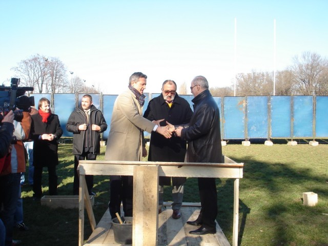 Cu aceasta ocazie, Octavian Morariu, impreuna cu invitatii sai Ion Tiriac, initiatorul acestui proiect si Octavian Belu, presedintele Agentiei Nationale pentru Sport au turnat primul cancioc la fundatia edificiului olimpic.