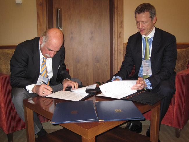 Presedintele Comitetului Olimpic si Sportiv Roman(COSR), Octavian Morariu si secretarul general Ioan Dobrescu s-au intalnit vineri, 27 noiembrie a.c., cu presedintele Comitetului National Olimpic din Cipru , Ourannios Ioannides, in cadrul hotetului Corinthia din Lisabona(Portugalia), unde a fost semnat un protocol bilateral de colaborare intre cele doua comitete olimpice nationale.