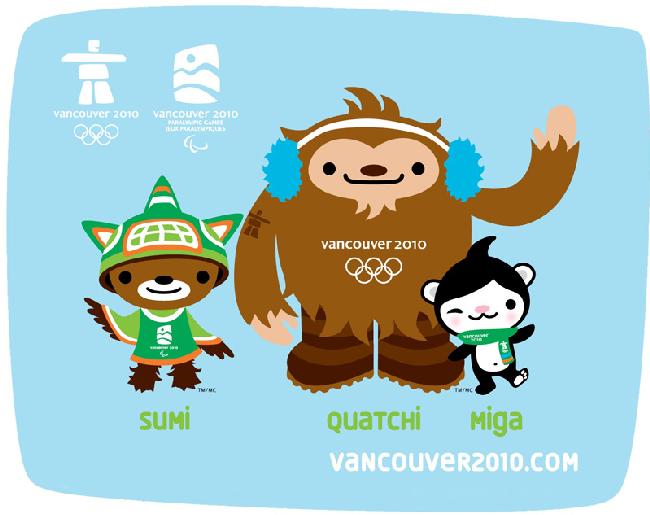 Cea de-a XXI-a editie a Jocurilor Olimpice de iarna de la Vancouver isi va intampina iubitorii sporturilor de iarna cu trei mascote atragatoare(Miga, Quatchi si Sumi), ca simbol al competitiei olimpice, ce reprezinta personaje mitologice ale regiunii British Columbia. Miga, este un urs mare, care locuieste cu familia lui in ocean, in apropiere de Tofino. Miga este jumatate urs si jumatate balena ucigasa, iar snowboard-ul este sportul de iarna preferat. Quatchi, este o creatura misterioasa, Sasquatch, care locuieste in padurile din Canada, si desi iubeste toate sporturile de iarna, el reprezinta hochei-ul. Cea de-a treia mascota, Sumi, zboara cu aripile unei creaturi legendare, Thunderbird, care poarta o caciula asemanatoare pielii de balena. Sumi reprezinta schiul alpin si este fan al Jocurilor Paralimpice. Miga si Quatchi reprezinta mascotele Jocurile Olimpice, in timp ce Sumi reprezinta mascota Jocurilor Paralimpice care se vor desfasura tot la Vancouver dupa incheierea Jocurilor de iarna din Canada.