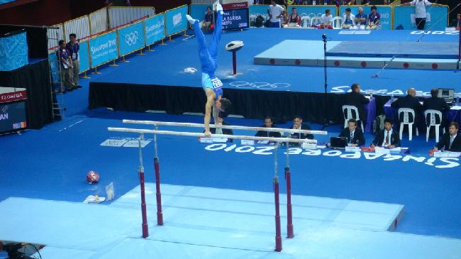 Cea de-a patra zi a intrecerilor de la Singapore a adus Romaniei un loc IV la gimnastica, sport care a reusit de-a lungul timpului sa ne aduca multe satisfactii si care a dat tarii noastre nenumarati campioni olimpici, mondiali si europeni. Concursul la individual compus, gazduit de Bisham Sports Hall, din cadrul Jocurilor Olimpice de Tineret, l-a avut in finala si pe reprezentantul nostru Andrei Muntean Vasile, care a reusit sa se situeze pe un onorant loc IV, la doar 5 sutimi de podium. Medalia cea mai stralucitoare a fost cucerita de cel care a dominat competitia inca din calificari, japonezul Yuya Kamoto, podiumul fiind completat de reprezentantul Ucrainei, Oleg Stepko si, respectiv, chinezul Xlaodong Zxu. Performantele reusite de sportivul nostru in finala de ieri sunt: sol – 14.000 puncte (p), cal cu manere – 12.950 p, inele – 14.650 p, sarituri – 15.800 p, paralele – 13.850 p, bara fixa – 13.700 p. Andrei Muntean va concura in finala concursului pe aparate, care va avea loc pe 21 si 22 august, unde are sanse reale sa cucereasca o medalie. Astazi intra in concurs Diana Bulimar, in finala feminina la gimnastica individual compus, care dupa evolutia din calificari, se anunta una din candidatele la medalii.