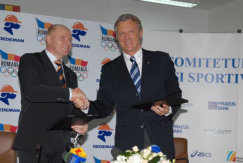 Familia olimpica a devenit mai bogata cu un membru dupa ce Comitetul Olimpic si Sportiv Roman (COSR) a semnat un parteneriat cu compania Dedeman. Modernul complex sportiv “Sydney 2000” de la Izvorani, unde s-a parafat noua colaborare, a avut darul sa-l impresioneze pe Dragos Paval, presedintele companiei Dedeman. “Sunt incantat de extraordinara baza sportiva de la Izvorani si de dotarea fantastica de aici ”, a spus Dragos Paval. “Noi suntem pasionati de sport si am sustinut mereu o serie de competitii sportive. Consideram ca sportul este un element cheie in educarea si dezvoltarea comunitatii si ne bucuram ca vom continua sa sprijinim miscarea sportiva alaturi de Comitetul Olimpic si Sportiv Roman. Istoria ascensiunii noastre ofera suficiente motive sa ne consideram un partener puternic si de incredere si sunt convins ca vom avea o contributie semnificativa la succesele pe care cu siguranta sportivii romani le vor obtine la Jocurile Olimpice de la Londra”, a completat presedintele Dedeman. “Este de apreciat ca in conditiile in care trecem printr-o perioada nu tocmai usoara am gasit un partener de talia Dedeman. Pot spune ca suntem doua seturi de valori absolut compatibile, care au in comun perseverenta, tenacitatea si munca necontenita, doua seturi de valori care si-au propus sa mearga impreuna pentru succese comune”, a spus Octavian Morariu, presedintele COSR.