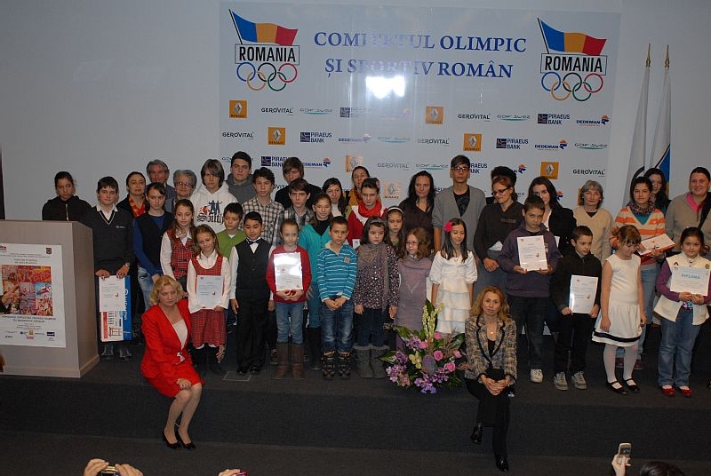 Amfiteatrul din incinta sediului Comitetului Olimpic si Sportiv Roman (COSR) a gazduit vineri, 11 noiembrie a.c, Gala laureatilor concursului de pictura si desen “Jocurile Olimpice in imaginatia copiilor”. Cea de-a XIX editie a competitiei de arta plastica, promovata si sprijinita de catre Comitetul International Olimpic, COSR prin Academia Olimpica Romana si Ministerul Educatiei, Cercetarii, Tineretului si Sportului (MECTS), a atras, in acest an, o participare numeroasa. In competitia nationala au intrat 558 lucrari - 208 la categoria 6-10 ani, 271 la categoria 11-14 ani si 79 la categoria 15-18 ani, din 20 de judete si Municipiul Bucuresti, respectiv 95 de unitati de invatamant. Concursul, care face parte dintr-o miscare nationala si internationala de promovare consecventa a spiritului olimpic si a valorilor olimpismului in randul tinerelor talente din mediul scolar, se adresează elevilor din gradinite, scoli si licee, precum si celor din unitatile de invatamant artistic si sportiv. Juriul, prezidat de dl. prof. Adrian Braescu, inspector general de arte vizuale in cadrul M.E.C.T.S., care i-a avut in componenta pe dl. prof. Adrian Curcan (inspector de specialitate la Inspectoratul Scolar al Municipiului Bucuresti), dna. profesor Silvia Draghicescu, dl. Mihai Neacsu (artist fotograf, fotoreporter la C.S. Dinamo Bucuresti) si pe Bogdan Burileanu, expert COSR si membru al Uniunii Cineastilor din Romania, a analizat lucrarile calificate in faza nationala si a desemnat 27 de premianti. S-au oferit diplome si premii castigatorilor premiilor speciale, cate unul acordat pentru fiecare categorie de varsta, celor care s-au clasat pe “podium”, precum si celor care vor intra in posesia mentiunilor, cate cinci acordate pentru fiecare categorie de varsta. Gala s-a bucurat de prezenta artistica a unor tineri instrumentisti de la Scoala de Muzica si Arte Plastice nr. 1 „Iosif Sava” din Bucuresti, pregatiti de dna. prof. Anne Marie Paladi. Laureatii concursului Categoria 6-10 ani Premiul Special: Popa Andrei - Palatul Copiilor Craiova Premiul I: Maia Leoveanu - Palatul Copiilor Craiova Premiul II: Matei Stefan - Sc. nr. 17 “Pia Bratianu”, Bucuresti Premiul III: Panduru Diana - L.P.S. “Banatul”, Timisoara Mentiuni: Craciun Beatrice - Sc. nr. 9 “Nicolae Orghidan”, Brasov Palea Ilinca - Sc. nr. 17 “Pia Bratianu”, Bucuresti Karacsony Timea Boglarka - Gradinita cu program prelungit “Arvacska”, Sf. Gheorghe Nitulescu Ana - Scoala de muzica si arte plastice nr. 2, Bucuresti Titiriga Maria - Scoala de muzica si arte plastice nr. 2, Bucuresti Categoria 11-14 ani Premiul Special: Holban Diana - C.N. de Arta “Octav Bancila”, Iasi Premiul I: Stefan Alexandru - Liceul de Arta „Nicolae Tonitza”, Bucuresti Premiul II: Dinulescu Alexandru - Scoala de muzica si arte plastice nr. 2, Bucuresti Premiul III: Nedelcu Nicolae - Scoala nr. 190 “Marcela Penes”, Bucuresti Mentiuni: Silviu Munteanu - Liceul Teoretic Codlea Pana Matei Teodor - Scoala generala nr. 5 „Petre Ghelmez”, Bucuresti Gherebenes Veronica - Scoala generala nr. 14 Stupini, Brasov Aslam Cristiana - Liceul Teoretic “Alexandru Vlahuta”, Bucuresti Pal Brigitta - Liceul Teoretic “Aprily Lajos”, Brasov Categoria 15-18 ani Premiul Special: Tosici Germina - Palatul Copiilor Craiova Premiul I: Paleu Carmen Nichita - Colegiul National „Alexandru Lahovari”, Ramnicu Valcea Premiul II: Luka Levente - Grup Scolar “Korosi Csoma Sandor”, Sf. Gheorghe Premiul III: Gavrilas Alexandru - Liceul de Arta “Stefan Luchian”, Botosani Mentiuni: Turcu Maria - Colegiul National “Andrei Saguna”, Brasov Al Sweiki Fedi Alex - Liceul Teoretic Bulgar „Hristo Botev”, Bucuresti Cretu Octavian - Grupul Scolar „Korosi Csoma Sandor”, Covasna Prazaru Anca - Colegiul National “Carol I”, Craiova Pilug Andreea - Liceul Pedagogic “Gh. Sincai”, Zalau