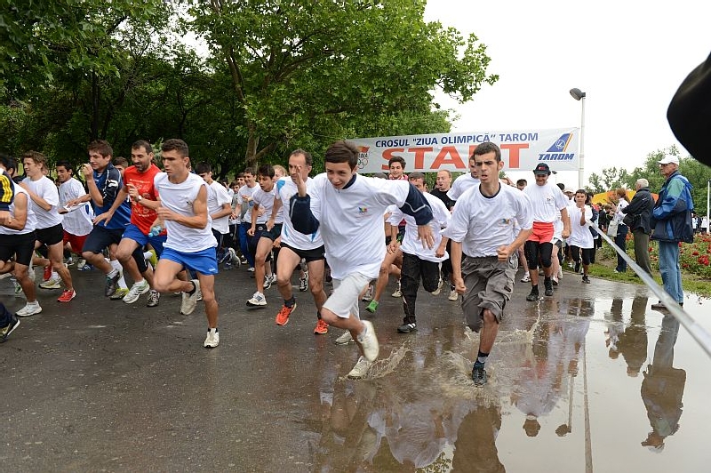 In ciuda vremii extrem de capricioase, peste 1300 de participanti s-au aliniat la startul crosului “Ziua Olimpica” TAROM, care a avut loc pe 25 mai, in Parcul Tineretului din Bucuresti. Din fericire, chiar daca cerul a fost in totalitate acoperit de nori amenintatori, nu a cazut niciun strop de ploaie pe durata competitiei organizata de Comitetul Olimpic si Sportiv Roman (COSR), in parteneriat cu Academia Olimpica, filiala Bucuresti, si sustinuta de TAROM, transportatorul oficial al echipei olimpice a Romaniei la Londra. Arthur Hoffman, secretarul general adjunct al COSR, a dat citire mesajului presedintelui Comitetului International Olimpic (CIO) Jacques Rogge, prin care liderul miscarii olimpice mondiale a tinut sa transmita, printre altele, ca “nu conteaza daca invingem sau pierdem, ci trebuie sa ducem jocul la bun sfarsit, deoarece nu trebuie sa uitam ca sportul aduce tuturor generatiilor o viata mai sanatoasa si mult mai echilibrata, care ne face sa ne simtim mai bine”. “Este extraordinar ce s-a intamplat la aceasta editie a crosului olimpic”, a spus Ioan Dobrescu, secretarul general al COSR. “Practic, toate sabloanele vehiculate in ultima vreme, potrivit carora copii si tinerii nu mai iubesc sportul ci doar computerele si jocurile video, au fost contrazise de participarea impresionanta la acest cros. In pragul Jocurilor Olimpice de la Londra am avut dovada ca oamenii nu numai ca iubesc sportul, dar si ca vor sa participe la intreceri sportive daca acestea sunt organizate cu profesionalism”. Ionela Tirlea, medaliata cu argint la 400 m garduri la JO de la Atena, a apasat pe tragaciul pistolului de start si goana dupa locurile fruntase a inceput, primii trei clasati de la fiecare dintre cele trei categorii de varsta la care s-a participat, atat la feminin cat si la masculin, fiind recompensati la final. Cei care au trecut primii linia de sosire au castigat cate o bicicleta, ocupantii pozitiilor secunde cate o pereche de role, iar cei care s-au clasat pe locul al treilea au obtinut cate o racheta si un set de mingi de tenis. Castigatorii: Categoria 10-14 ani: Masculin :I - Nicolae Banescu - CSS 6; II - Costin Mateescu - CSS 6; III - Amet Hasan - Sc. 102. Feminin : I - Gabriela Caraiani - Sc. 1073; II - Ilinca Maria Dima - CSS 3; III - Ana Maria Brica - CSS 4. Categoria 15 - 18 ani: Masculin : I - Ionut Panglica - Grupul Scolar Industrial “Sf. Pantelimon”; II - Alin Ionut Dirnea - CSS Triumf; III - Liviu Odroiu - Colegiul Tehnic “Anghel Saligny”. Feminin : I - Adina Constantin - CS Rapid; II - Ana Maria Cazan - CSS Triumf; III - Roxana Arustei - CSS Triumf. Categoria OPEN (toate categoriile de varsta): Masculin : I - Ion Bocancea - UNEFS Bucuresti; II - Robert Boroi - Politehnica Bucuresti; III - Victor Vlad - Ro Club Maraton - 49 de ani, decanul de varsta al competitorilor. Feminin : I - Nicoleta Petrescu - CS Rapid; II - Florentina Buga - UNEFS; III - Ioana Rosculet - ASE Bucuresti. Mai multe fotografii de la crosul “Ziua Olimpica” TAROM gasiti pe pagina de facebook a COSR (www.facebook.com/cosromania)