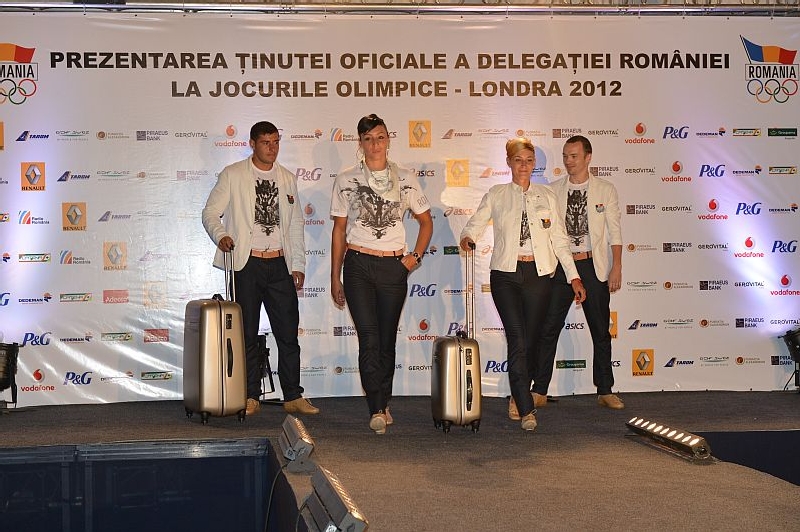 Prezentarea echipamentului sportiv si a tinutei oficiale pe care membrii Echipei Olimpice a Romaniei le vor purta la Jocurile Olimpice de la Londra s-a dovedit a fi un spectacol de inalta clasa. Organizat pe esplanada din fata sediului ultramodern al Comitetului Olimpic si Sportiv Roman (COSR), in prezenta a numeroase personalitati ale vietii sportive din Romania si ambasadorilor Greciei si Marii Britanii, evenimentul a avut toate ingredientele reusitei: un moment artistic emotionant, solemnitatea imprimata de mesajele transmise de presedintele COSR Octavian Morariu si ambasadorii Greciei si Marii Britanii, eleganta, tonusul si energia transmise de sportivii care au purtat pe podium hainele olimpicilor. Placuta seara de iunie in care a avut loc evenimentul s-a metamorfozat cand pe podiumul de defilare au urcat vestalele grecesti care au invocat spiritul lui Apollo, “antic Spirit, duh etern, cratoru-a toate si a tot ce e sublim, frumos si adevar curat ”, pentru a aprinde flacara “jocurilor nobile” care dau “darzenie trupului si otelita vlaga”. Dansatoarele din grupul “Vertige” i-au purtat pe cei prezenti undeva in Grecia Antica, prin dansul lor ritual, iar torta aprinsa care s-a plimbat prin multime a transmis mesajul simbolic. Cuvintele presedintelui COSR Octavian Morariu si ale celor doi ambasadori ai Marii Britanii si Greciei, au readus asistenta in zilele noastre, pentru ca se apropia momentul mult asteptat: prezentarea tinutelor pentru Londra, pe acordurile unei piese interpretate si compuse special pentru acest eveniment de Nicola. Mai intai, componentii echipei nationale de gimnastica aerobica a Romaniei (Carmen Iliescu, Adela Serban, Diana Deac, Andreea Darie, Mircea Zamfir, Alexandru Bors, Valentin Mavrodineanu si Florin Nebunu) au defilat imbracati in echipamentul sportiv, oferit de firma Asics, pe care componentii Echipei Olimpice il vor purta pe tot parcursul intrecerilor de la Londra. Apoi a fost prezentata tinuta de calatorie marca Potzaichin, purtata de canotoarele Roxana Cogianu si Talida Gidoiu si kaiacistii Petrus Gavrila si Traian Neagu, dupa care scrimera Bianca Pascu, kaiacistele Irina Lauric si Iuliana Paleu, canoistii Liviu Dumitrescu si Victor Mihalachi si scrimerul Radu Daraban au imbracat tinutele de defilare, de asemenea marca Potzaichin. La final, pe scena, alaturi de sportivii - fotomodele, a urcat si marele Ivan Potzaichin, prezent ca sportiv la cinci editii ale Jocurile Olimpice, cvadruplu laureat cu aur la Jocurile Olimpice de vara, in 1968, 1972, 1980 si 1984, si triplu laureat cu argint, al carui nume este legat acum de vestimentatia Echipei Olimpice a Romaniei. Reflectoarele s-au stins dupa ce Octavian Morariu i-a oferit lui Ivan Patzaichin un trofeu pentru a-i recompensa extraordinara implicare in viata olimpica romaneasca, dar cei prezenti au mai ramas ore bune pentru a schimba impresii despre seara minunata.