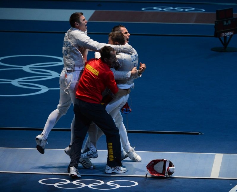 Tiberiu Dolniceanu, Rares Dumitrescu, Gelu Zalomir si Alexandru Siriteanu, cu alte cuvinte echipa masculina de sabie a Romaniei a cucerit a patra medalie de argint pentru Romania, la Londra.