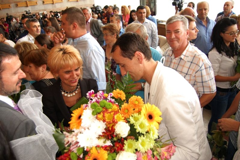 Cu totii au venit cu zeci de buchete de flori cu care aproape i-au acoperit pe medaliati.
