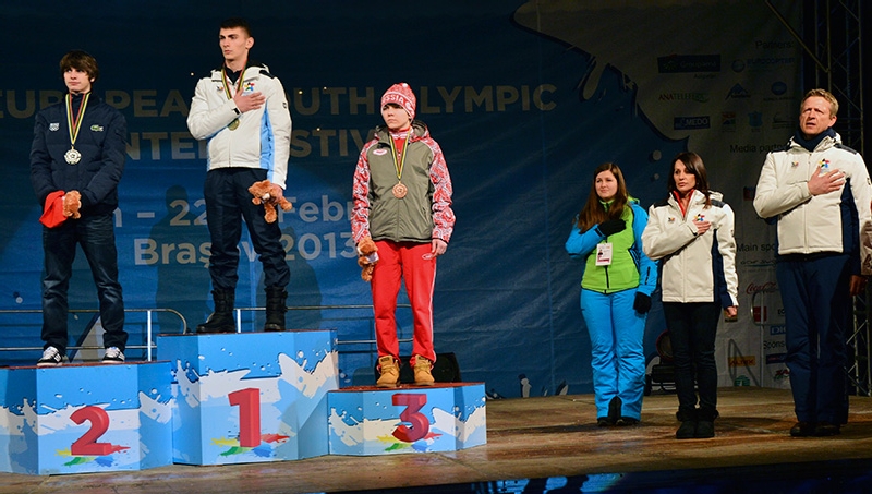 In aplauzele a peste 400 de romani, care au venit sa-l felicite si sa-i fie alaturi, Emil Imre a urcat pe cea mai inalta treapta a podiumului. Pretioasa medalie de aur, prima din istoria participarilor Romaniei la cele 11 editii ale FOTE, i-a fost oferita de Octavian Morariu, presedintele Comitetului Olimpic si Sportiv Roman (COSR) si Nadia Comaneci, cea care a revolutionat gimnastica obtinand prima nota de 10 din istoria acestui sport, iar imnul Romaniei a rasunat in premira in Medal Platza din Poiana Brasov.