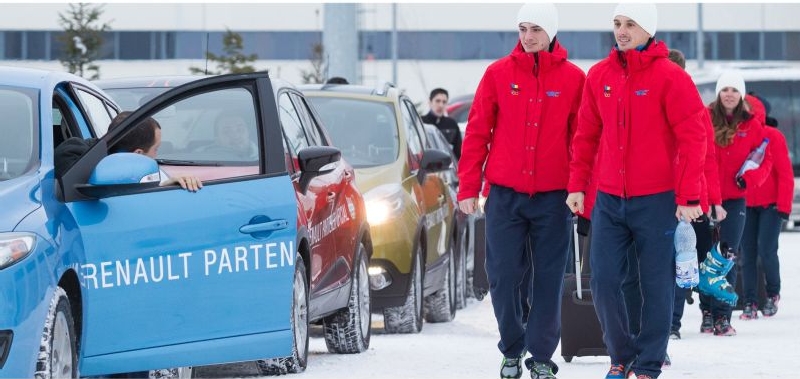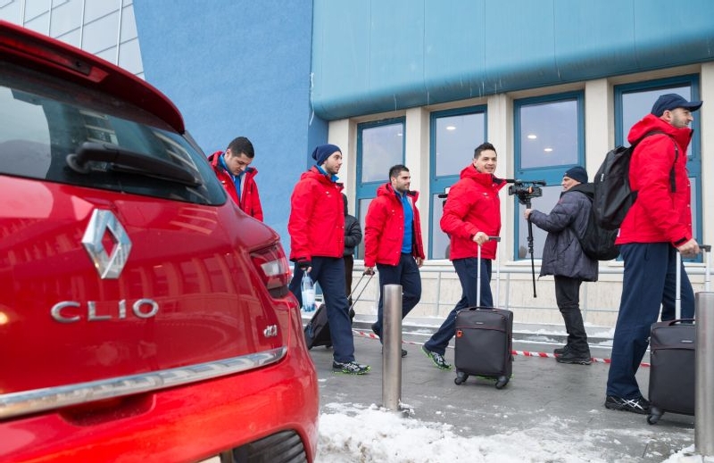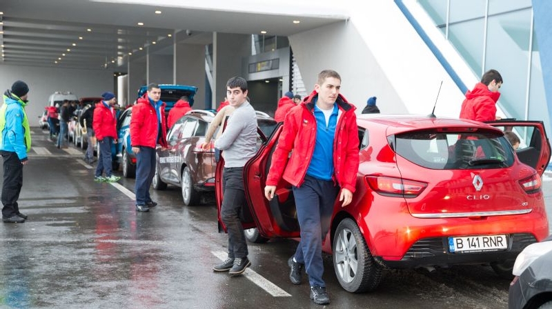 Cei 24 de sportivi care vor reprezenta Romania la Jocurile Olimpice de iarna de la Sochi au plecat de la Izvorani spre Aeroportul International Henri Coanda din Otopeni cu o caravana auto formata din noua automobile Renault.