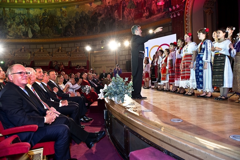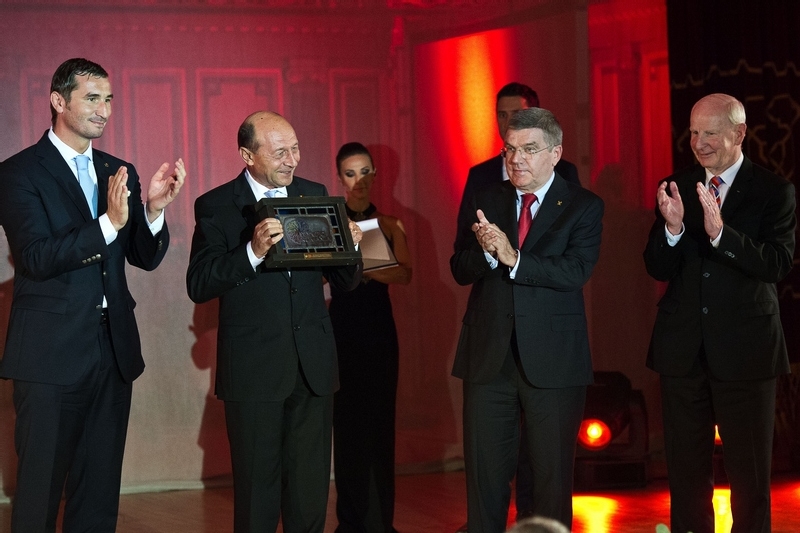 Presedintele Romaniei Traian Basescu si liderii celor mai importante structuri sportive internationale, Thomas Bach, presedintele Comitetului International Olimpic (CIO), si Patrick Hickey, presedintele Asociatiei Comitetelor Olimpice Europene (EOC) au fost alaturi de cei peste 200 de medaliati olimpici romani, ambasadori, oameni de sport si reprezentanti ai diverselor comitete olimpice la aniversarea Centenarului Olimpismului Romanesc, celebrata la Ateneul Roman (intreaga gala poate fi urmarita aici).