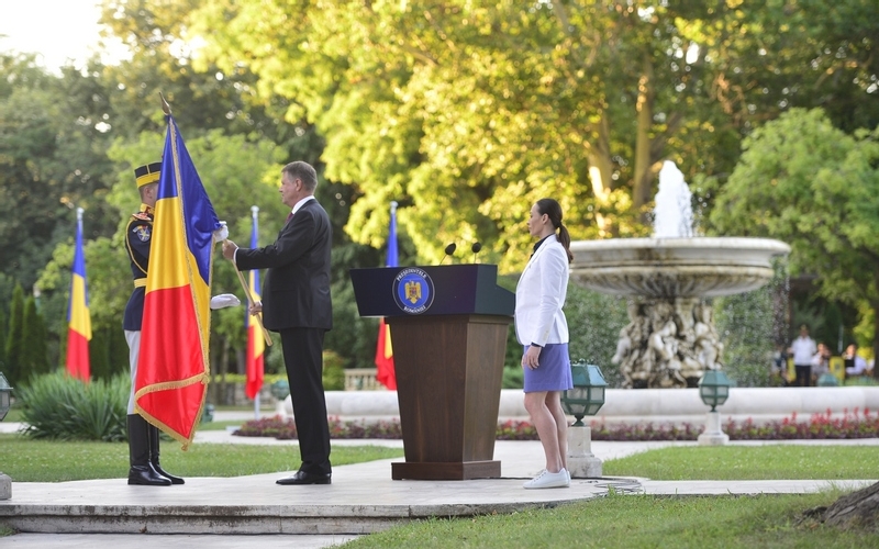 Echipa Olimpica care va reprezenta Romania la Jocurile Olimpice de la Rio de Janeiro a fost primita de presedintele Romaniei Klaus Iohannis la Palatul Cotroceni unde a avut loc ceremonia de inmanare a steagului Romaniei de catre presedintele tarii portdrapelului Catalina Ponor.