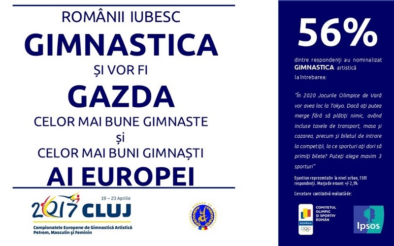O cercetare cantitativa realizata de compania de cercetare de piaţa Ipsos Romania in parteneriat cu Comitetul Olimpic si Sportiv Roman arata ca unul din doi romani (mai exact 56%) isi doreste sa asiste din tribune la competitia de gimnastica artistica la Jocurile Olimpice Tokyo 2020.