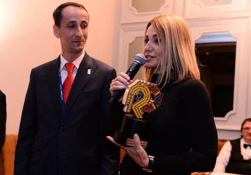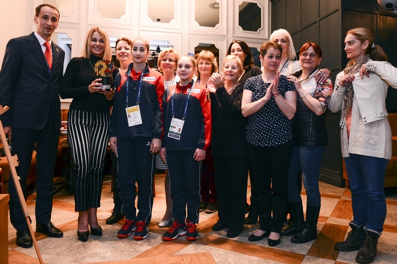 Mihai Covaliu, presedintele COSR, a oferit trofeul Team Romania Nadiei Comaneci, iar gimnasta de 10 a Romaniei, cu generozitatea si fair play-ul care au caracterizat-o dintotdeauna, a dedicat distinctia tuturor campionilor, antrenorilor si celorlalti membri ai familiei gimnasticii romanesti.