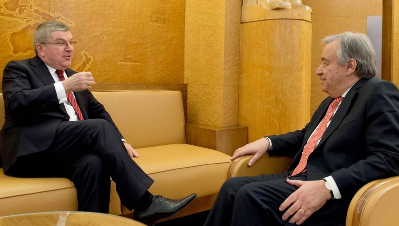 Comitetul International Olimpic (CIO) saluta initiativa noului secretar general al Natiunilor Unite (ONU), António Guterres , de intarire in continuare a cooperarii excelente, deja existente, cu CIO. Secretarul general ONU propusese consolidarea legaturilor inca de la intalnirea cu Thomas Bach, presedintele CIO, din ianuarie 2017.