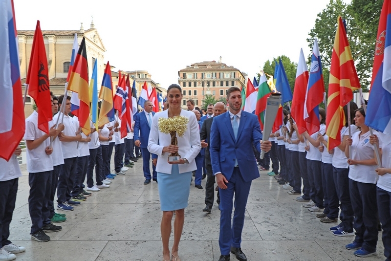 Flacara Olimpica a Festivalului Olimpic al Tineretului European (FOTE) care va avea loc in aceasta vara la Gyor, in Ungaria, a fost aprinsa la Roma in cadrul unei ceremonii de exceptie. Flacara a fost ridicata de un grup de sportivi de marca ai Ungariei - Kriszti