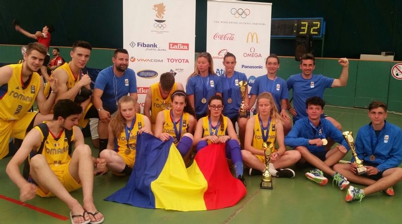 La baschet, echipa Romaniei a fost formata din patru fete – Irina Parau, Bolgarka Biszak, Orsolya Voloncs, Maria Claudia Dinu si patru baieti – Stefan Vasile Birloveanu, Andrei Dragos Diculescu, Aurel Antonio Nasturescu, Mihai Blagu, insotiti de antrenorul Florin Covaciu.