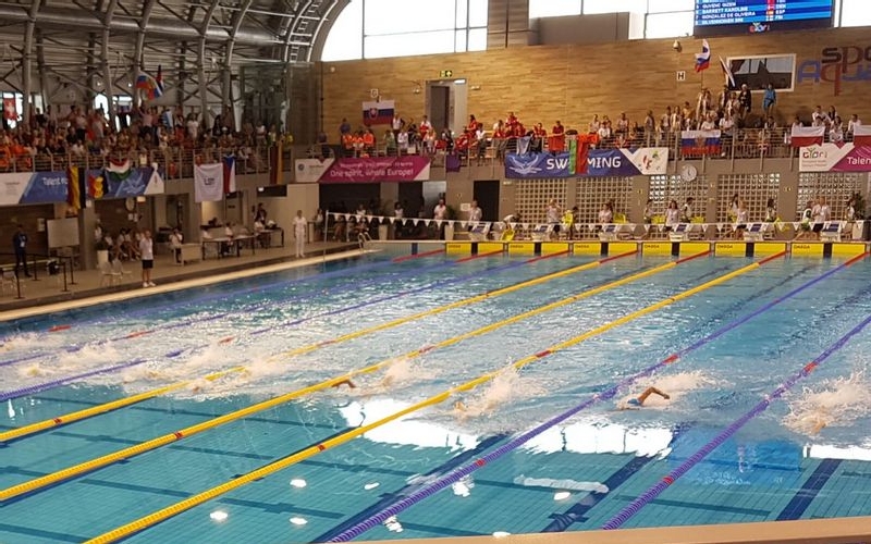 Purtatorul de drapel al Echipei Olimpice a Romaniei la festivitatea de deschidere a FOTE Gyor 2017 Ana Iulia Dascal a urcat pe cea de-a treia treapta a podiumului la 100 m liber.