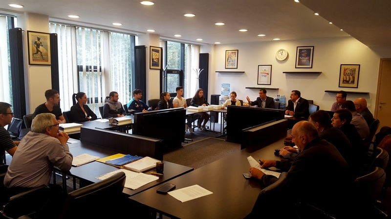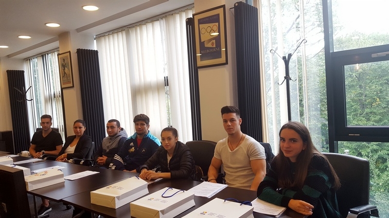 Mihai Covaliu, presedintele Comitetului Olimpic si Sportiv Roman (COSR) si George Boroi, secretarul general al COSR, i-au intampinat, astazi, la Casa Olimpica, pe atleta Andrea Miklos, gimnastii Larisa Iordache si Andrei Muntean, luptatorii Ivan Guidea si George Mariea si scrimerii Bianca Pascu si Florin Dabija, beneficiari ai programului derulat de Solidaritatea Olimpica „Burse olimpice pentru sportivi – Tokyo 2020”, si pe reprezentantii federatiilor de specialitate.