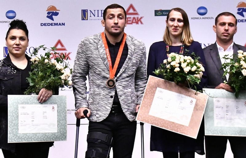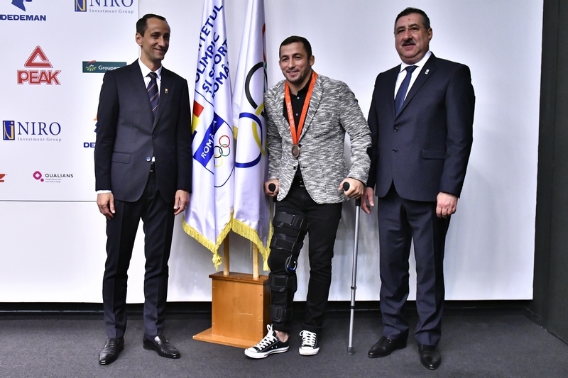 In cadrul ceremoniei, Stefan Gheorghita, clasat pe locul al treilea in intrecerile olimpice de lupte libere, in limitele categoriei 74 kg, a primit medalia de bronz de la membrul CIO pentru Romania.