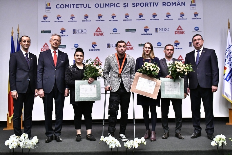 Stefan Gheorghita (lupte libere), Cristina Casandra (atletism), Eusebiu Iancu Diaconu (lupte greco-romane) si Roxana Daniela Cocos (haltere) au primit distinctiile olimpice pentru rezultatele inregistrate la Jocurile Olimpice de la Beijing, din 2008, unde au ocupat pozitii superioare, in urma descalificarii unor concurenti care au incalcat regulile anti-doping.
