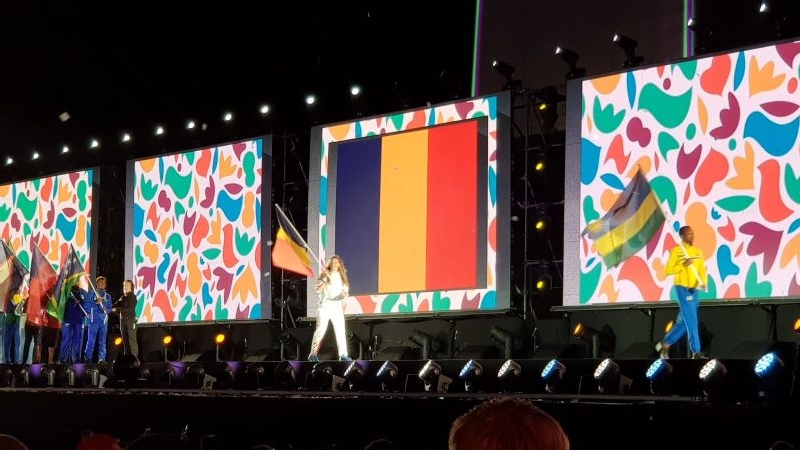 Canotoarea Tabita Maftei a purtat drapelul Romaniei la feerica festivitate, salutandu-i vesela pe cei peste 200 000 de spectatori prezenti in jurul Obeliscului din Buenos Aires, in timp ce colegii sai s-au bucurat din tribune de minunatul si ineditul spectacol oferit de organizatorii argentinieni.