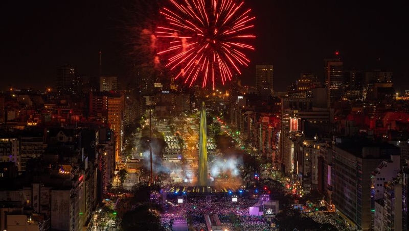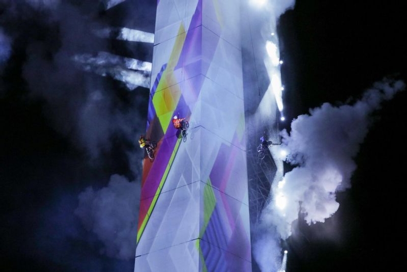 Festivitatea la care au lucrat aproape 2000 de persoane, incluzand peste 350 de artisti, tehnicieni si muzicieni ai companiei de teatru argentinian Fuerza Bruta, a fost spectaculoasa si inedita, cu inelele olimpice care pluteau in aer, cu numerosi dansatori de tango care interpretau pe balcoanele apartamentelor cu vedere la Obelisc, cu sportivi care escaladau Obeliscul luminat feeric cu barci, canoe sau biciclete, sau pur si simplu mergeau perpendicular pe cel unul dintre cele mai faimoase monumente ale capitalei Argentinei.