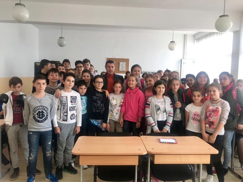 Fostul boxer, primul campion mondial al boxului profesionist romanesc, le-a vorbit elevilor despre importanta practicarii unui sport de la varste cat mai fragede si i-a incurajat sa faca cat mai multa miscare.