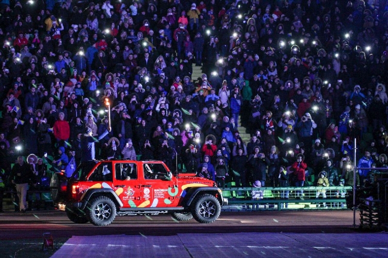 Flacara Olimpica a sosit intr-un jeep si a fost aprinsa in acelasi soclu de unde a stralucit si in urma cu 35 ani, in timpul Jocurilor Olimpice de iarna Sarajevo 1984. Un superb foc de artificii a incheiat ceremonia, dupa ce Milorad Dodik, presedintele Bosniei si Hertegovinei, a deschis oficial Festivalul.