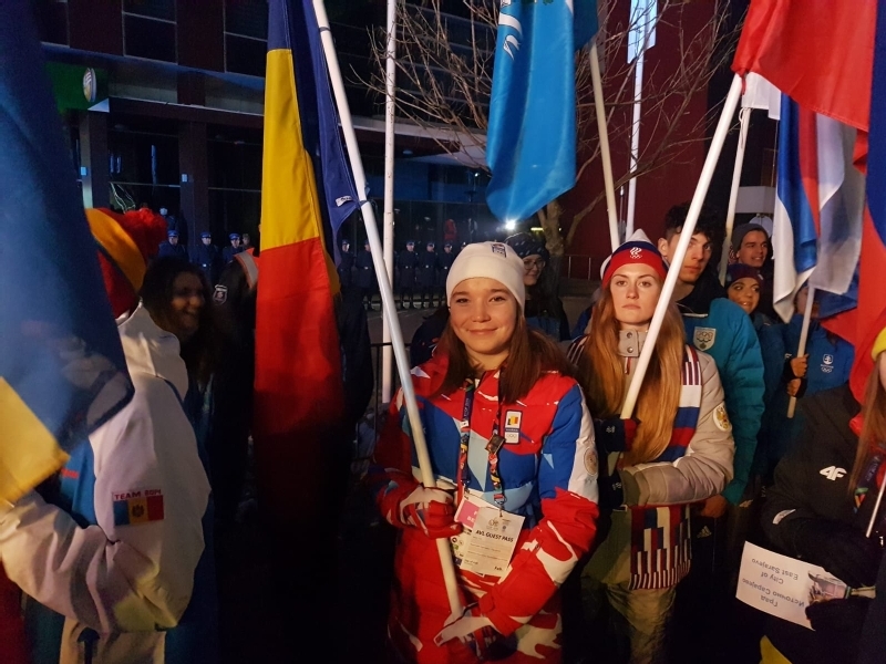 Defilarea drapelelor tarilor paricipante, unde tricolorul Romaniei a fost purtat de Katalin Albert, locul 11 la short track, 1500 m, a fost urmata de mesajele oficialitatilor.