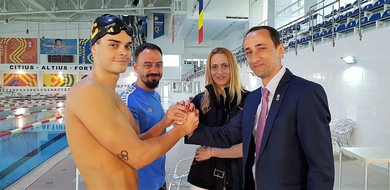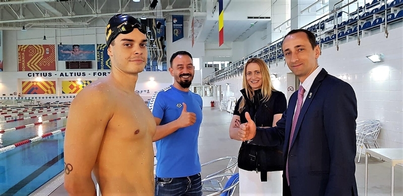 Robert Glinta, primul sportiv roman calificat la Jocurile Olimpice de la Tokyo 2020 si antrenorul sau, Silviu Anastas, au fost felicitati de presedintele Comitetului Olimpic si Sportiv Roman Mihai Covaliu si presedintele Federatiei Romane de Natatie si pentatlon Modern Camelia Potec pentru primul pas facut in drumul spre Tokyo.
