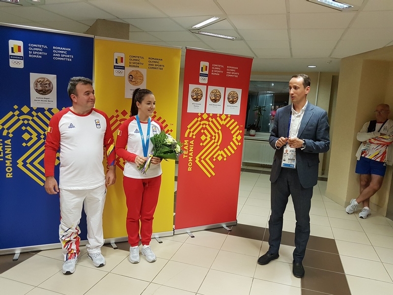 A devenit o frumoasa traditie la JE Minsk 2019, ca medaliatii tricolori sa primeasca flori si sa fie felicitati de presedintele Comitetului Olimpic si Sportiv Roman Mihai Covaliu si de George Boroi, secretarul general al COSR, la finalul zilei competitionale.