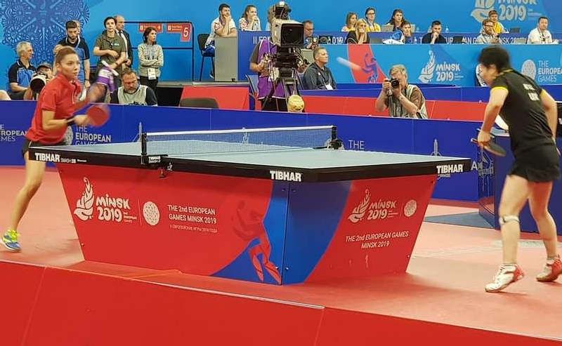 Sosita la Minsk de la Lausanne, unde a participat la inaugurarea oficiala a noului sediu al Comitetului International Olimpic, Nadia Comaneci i s-a alaturat presedintelui Comitetului Olimpic si Sportiv Roman Mihai Covaliu si impreuna i-au incurajat din tribune pe sportivii romani aflati in competitie.