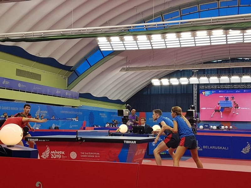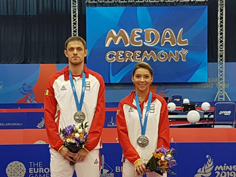 Bernadette Szocs si Ovidiu Ionescu au cucerit medaliile de argint in concursul de dublu mixt, de la tenis de masa, din cadrul Jocurilor Europene de la Minsk. In finala, tricolorii au pierdut cu 0-3 in fata perechii germane Petrissa Solja/Patrick Franziska, favorita numarul 3 a competitiei. Primii clasati in intrecerea de dublu mixt la tenis de masa si-au asigurat si prezenta la Jocurile Olimpice de la Tokyo din 2020.