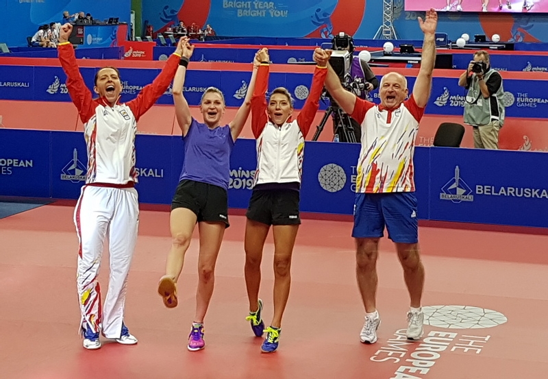 Victorie de senzatie, cu 3-2, a echipei de tenis de masa a Romaniei in fata Ungariei, in semifinala Jocurilor Europene de la Minsk. La capatul a patru ore si jumatate, sustinute frenetic din tribune de colegii din TEAM ROMANIA, in frunte cu medaliatii cu aur de la tir si canoe, de Mihai Covaliu, presedintele Comitetului Olimpic si Sportiv Roman, George Boroi, secretarul general al COSR, si oficiali COSR, de ambasadorul Romaniei in Belarus, Elizabeta Samara, Daniela Dodean Monteiro si Bernadette Szocs s-au calificat in finala JE MINSK 2019.