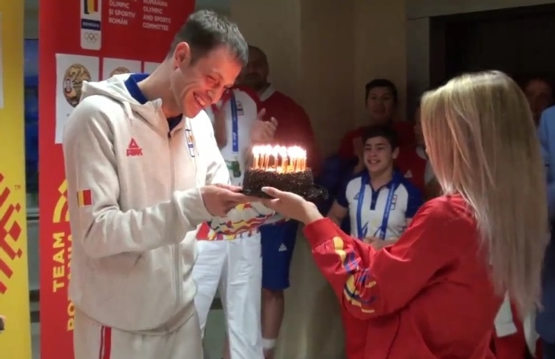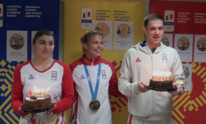 Apoi Alexandra Nicoleta Anghel, din lotul de lupte, si Ovidiu George Ionescu, de la tenis de masa, care si-au aniversat ziua de nastere pe 28 iunie, au fost invitati in fata colegilor care le-au cantat in cor ” Multi ani traiasca!”.