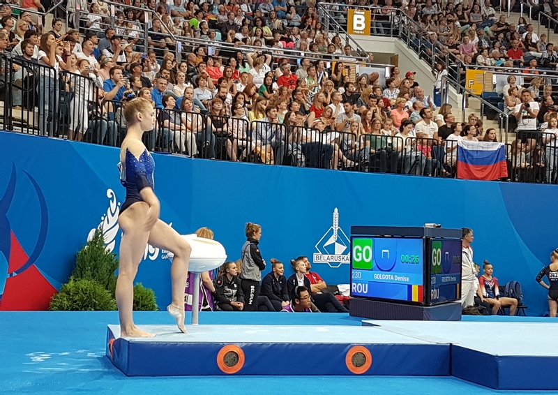 In ultima zi a Jocurilor Europene de la Minsk, Denisa Maria Golgota, singura reprezentanta a Romaniei in competitia de gimnastica artistica, a fost aproape de o medalie la barna. Cu un exercitiu pentru care a primit 12.933 puncte, gimnasta tricolora s-a clasat pe locul 4.
