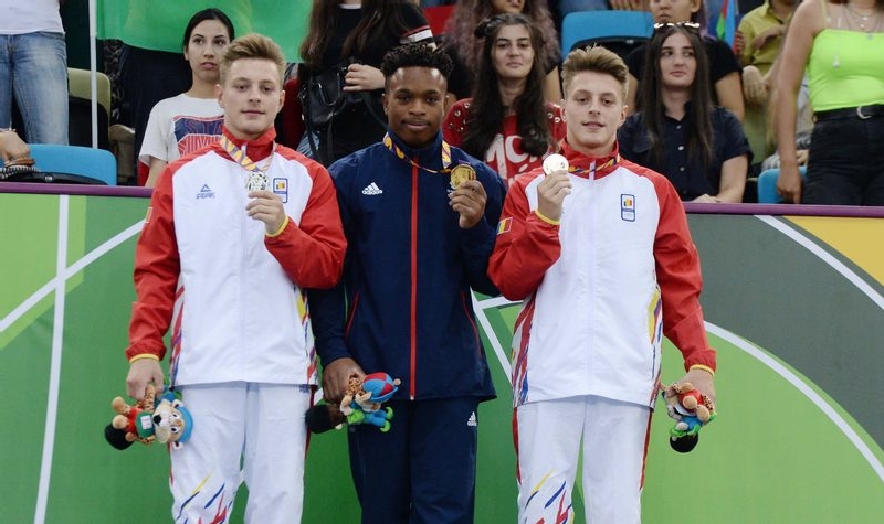 Sariturile gimnastilor romani medaliate cu argint, respectiv bronz, festivitatea de premiere oficiata de Mihai Covaliu, presedintele Comitetului Olimpic si Sportiv Roman, declaratii ale sportivilor si ale antrenorului lotului masculin de gimnastica Adrian Meleanca, in reportajul realizat de la fata locului, de mai jos.