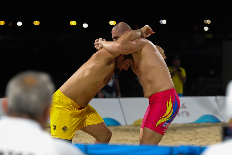 Rares Daniel Chintoan si Vasile Madalin Minzala, cei doi tricolori care au luptat in ultima zi a Jocurilor Mondiale pe plaja, s-au clasat pe locul 6, in limitele categoriilor +90 kg, respective 80 kg.