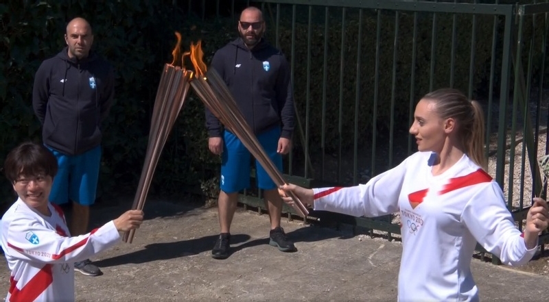 Vedeta sportului elen i-a predat apoi Torta fostei atlete Mizuki Noguchi, in varsta de 41 de ani, medaliata cu aur la proba feminina de maraton din cadrul Jocurilor Olimpice de la Atena, din 2004, cea dintai reprezentata a Japoniei desemnata sa poarte a Flacara Jocurilor Olimpice Tokyo, 2020.