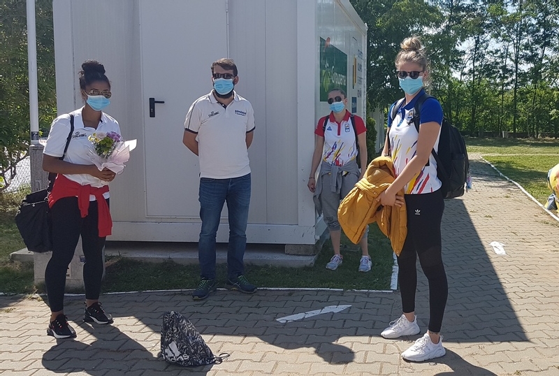 Dupa ce au fost testate cu “Real Time PCR – COV-19”, iar rezultatele au iesit negative, Gabriela Marginean, Ancuta Stoenescu, Gabriela Irimia, Anca Sipos, Alexandra Uiuiu, Anne Marie Godrie Parau, Florina Gabriela Stanici, insotie de antrenorul Alexandru Olteanu, Mircea Nutescu (fizioterapeut/kinetoterapeut) si Cristian Olteanu (psiholog), au ajuns la Izvorani.