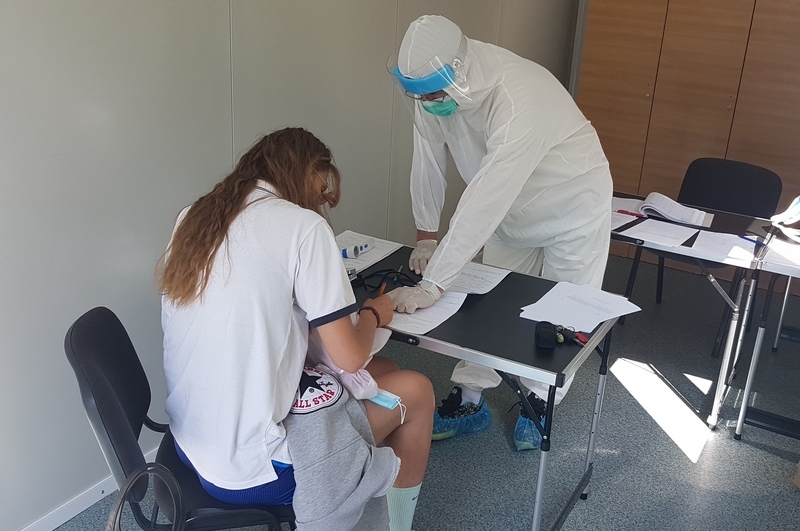 Lotul olimpic feminin de baschet 3x3 a sosit astazi la Complexul Olimpic Sydney 2000 din Izvorani si a parcurs circuitul de triaj efectuat de asistentul medical Justin Radutu, sub supravegherea medicului Diana Torje.