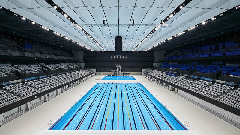 Aquatics Centre, ultima arena sportiva permanenta nou construita de la zero special pentru Jocurile Olimpice si Paralimpice Tokyo 2020, a fost inaugurata in capitala Japoniei cu o intarziere de sapte luni, din cauza pandemiei de COVID-19.
