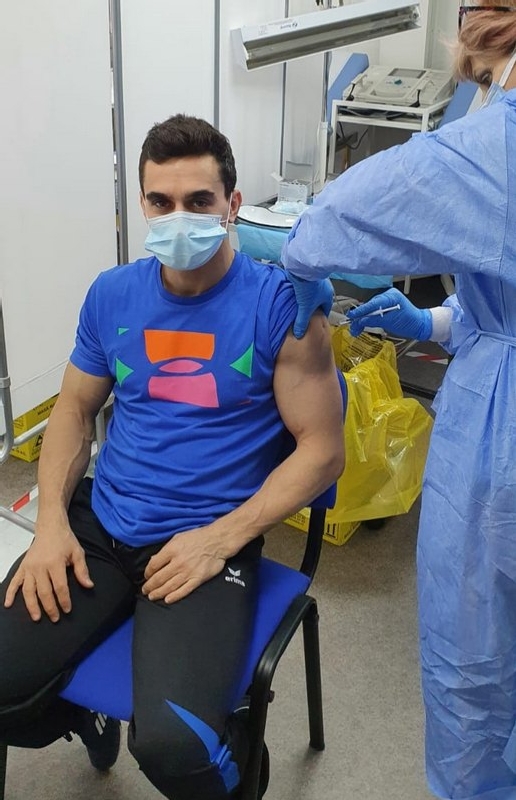 Marian Drăgulescu, reprezentantul României în întrecerile masculine de gimnastică de la Tokyo 2020, care în această vară va participa la cea de-a cincea ediţie Jocurilor Olimpice din carieră, s-a vaccinat astăzi împotriva COVID-19 la Institutul Naţional de Cercetare-Dezvoltare Medico-Militară "Cantacuzino".