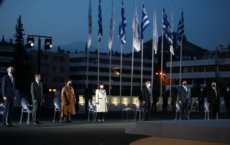Alături de Katerina Sakellaropoulou, președintele Republicii Elene, președintele Comitetului Olimpic al Greciei Sypros Capralos și alți demnitari eleni, Bach a participat la ceremonia de pe stadionul care 1896 a găzduit prima ediție a Jocurilor Olimpice.