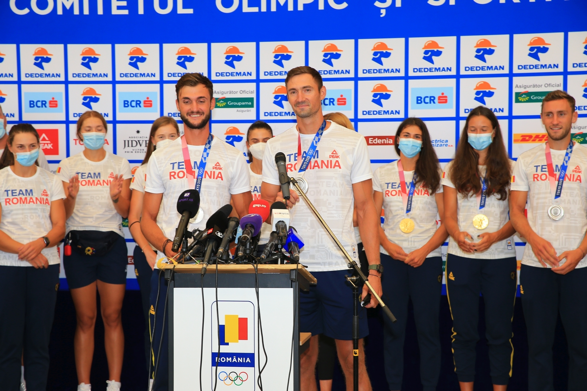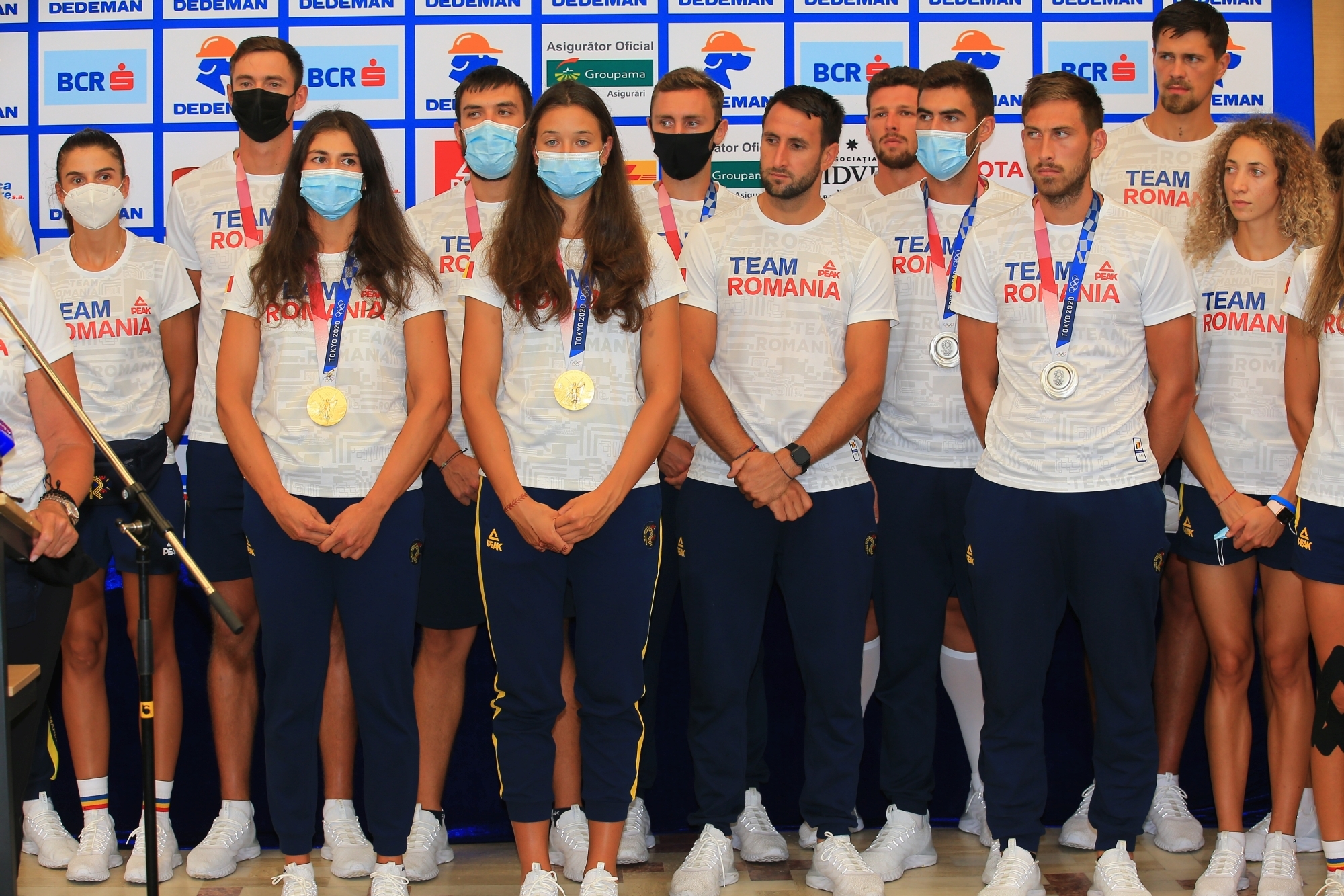Ce emoții! Ce bucurie! Ce primire! Avionul de linie care i-a adus pe canotori acasă de la Jocurile Olimpice Tokyo 2020 a fost tras lângă chiar lângă Salonul Oficial al Aeroportului Henri Coandă din Otopeni, iar sportivii au pășit pe covorul roșu. Reprezentanții Comitetului Olimpic și Sportiv Român, care au organizat festivitatea de primire, ai Federației Române de Canotaj, ai Ministerului Tineretului și Sporturilor, ai cluburilor din care fac parte, prieteni și zeci de ziarișți i-au așteptat cu brațele pline de flori.