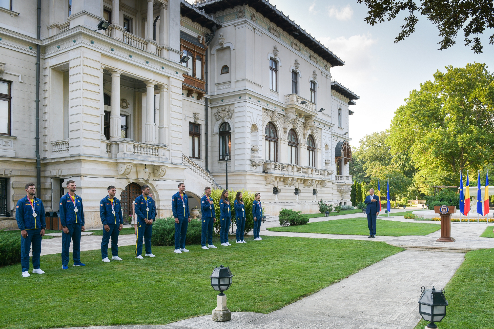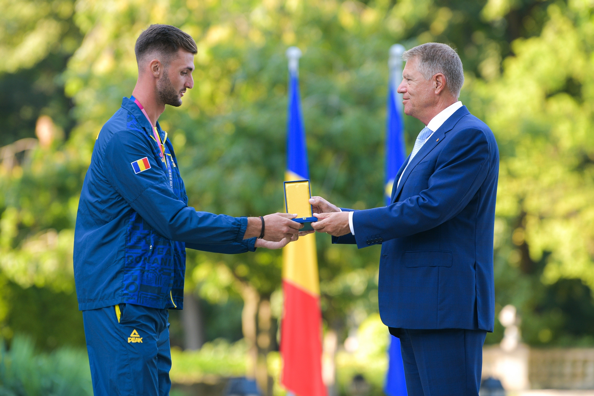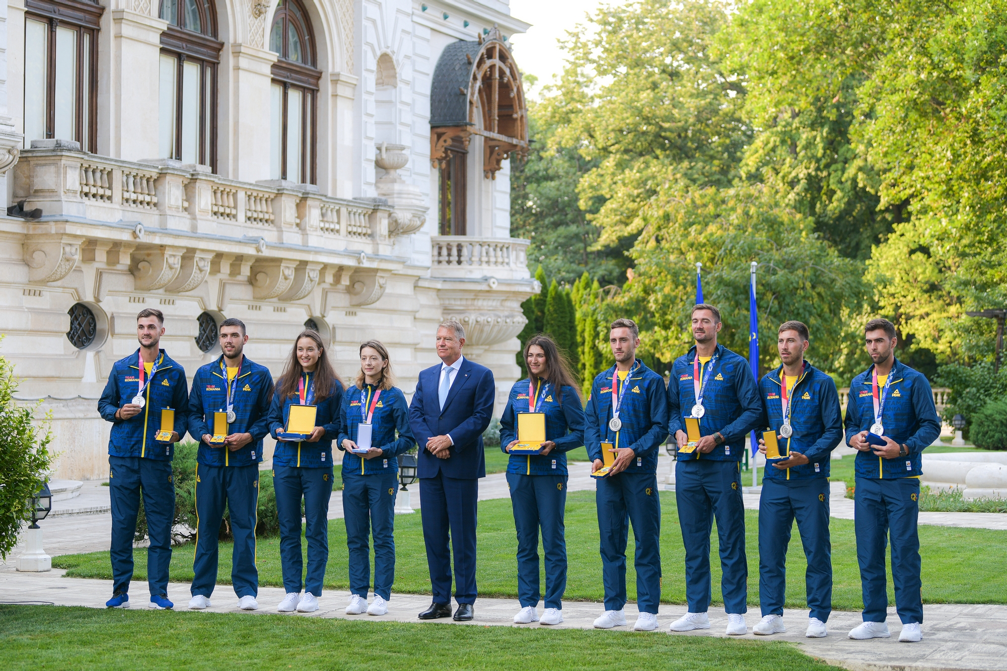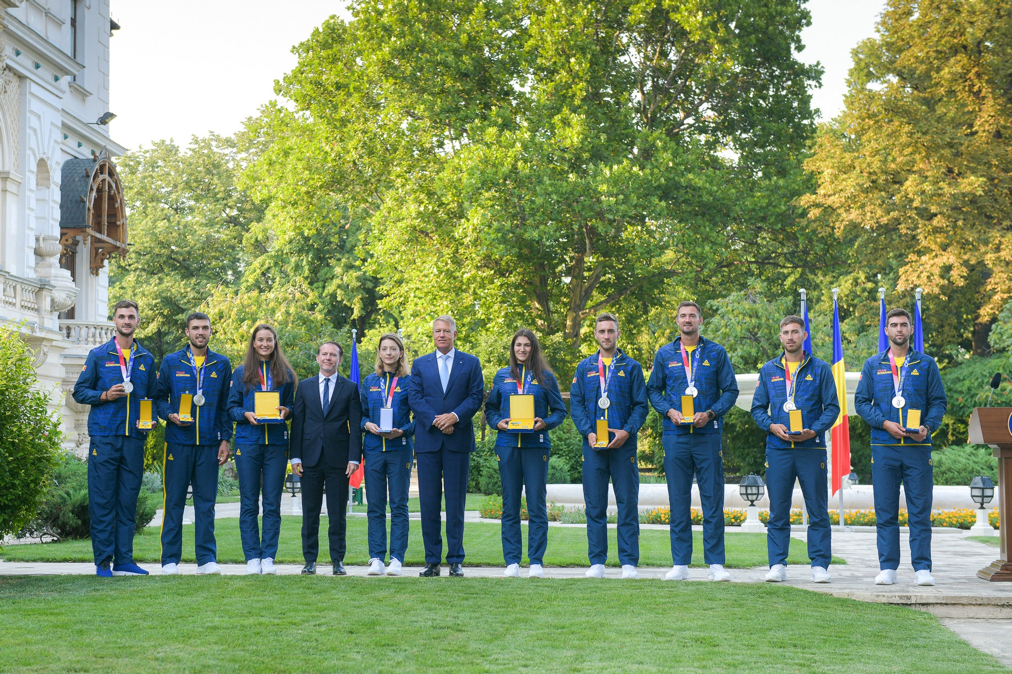 Președintele României Klaus Iohannis i-a decorat astăzi pe cei nouă sportivi tricolori care au câștigat medalii la Jocurile Olimpice Tokyo 2020. În cadrul ceremoniei care a avut loc în grădina Palatului Cotroceni, Ancuța Bodnar și Simona Radiș, campioanele olimpice, au fost decorate cu Ordinul ”Meritul Sportiv” clasa I, Ana Maria Popescu, medaliată cu argint, a primit Ordinul Național ”Serviciul Credincios” în Grad de Cavaler, iar canotorii Cosmin Pascari, Ștefan Berariu, Mugurel Semciuc, Mihăiță Țigănescu, Cirpian Tudosă și Marius Cozmiuc, medaliați cu argint, au primit Ordinul ”Meritul Sportiv” clasa a II -a.