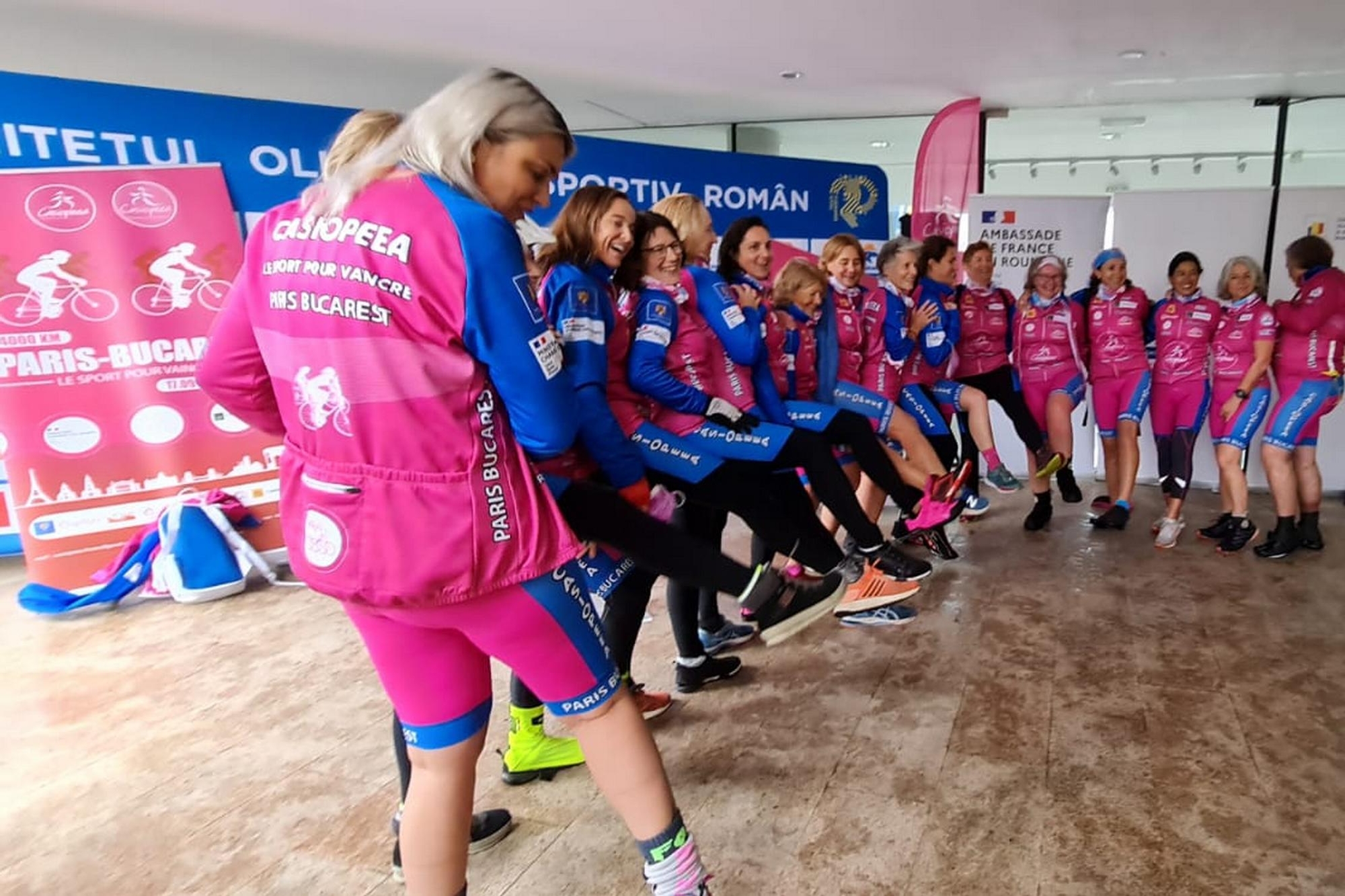 Peste 45 de femei, membre ale Asociației Casiopeea, care au plecat pe 17 septembrie pe biciclete din Paris, au sosit alături de însoțitorii lor de traseu pe Esplanada Casei Olimpice în aplauzele celor prezenți.