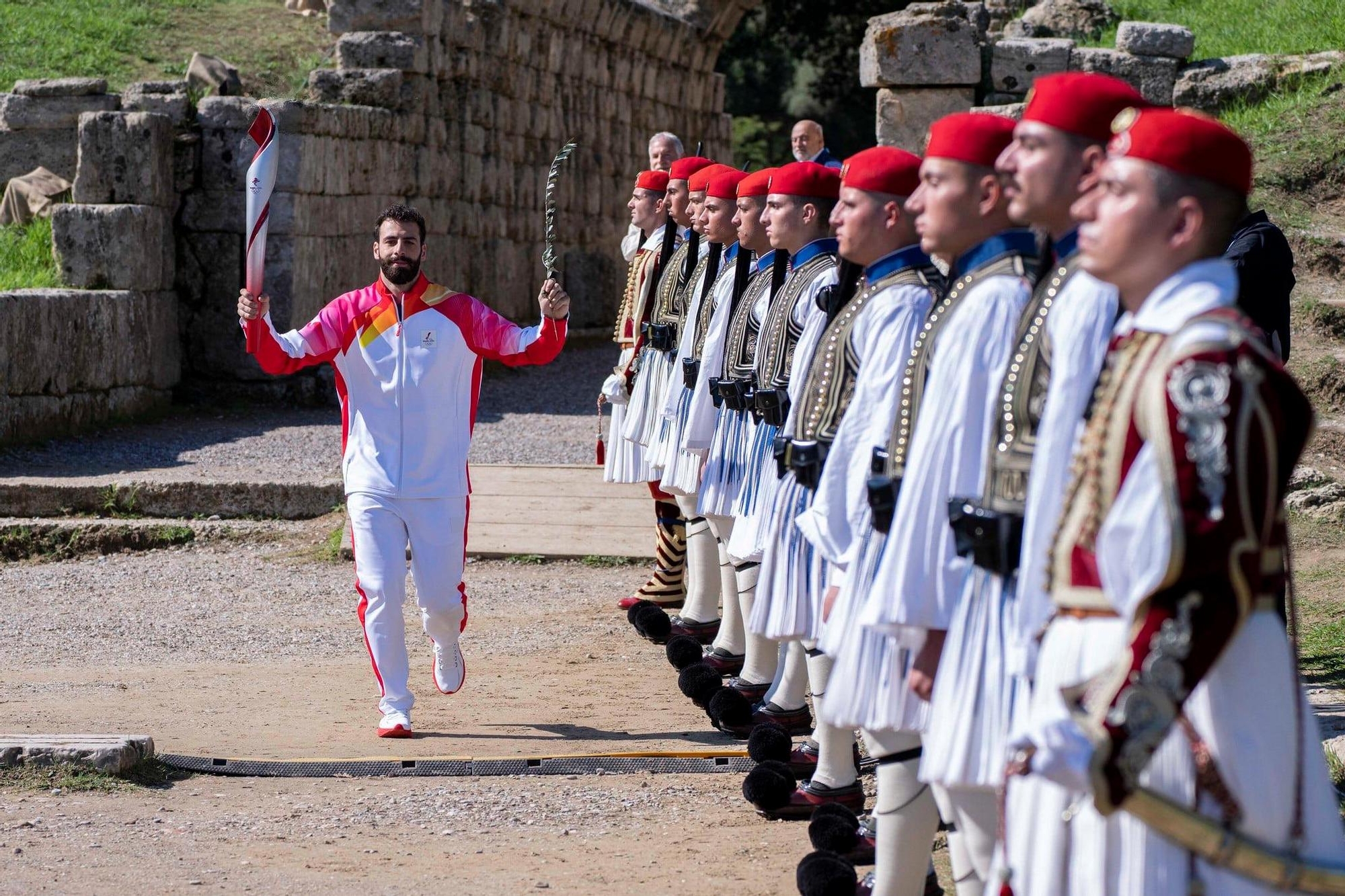Aseară Flacăra Beijing 2022 a strălucit din vârful Acropolei unde a fost purtată de canotorul grec Stefanos Douskos, campion la Tokyo 2020.
