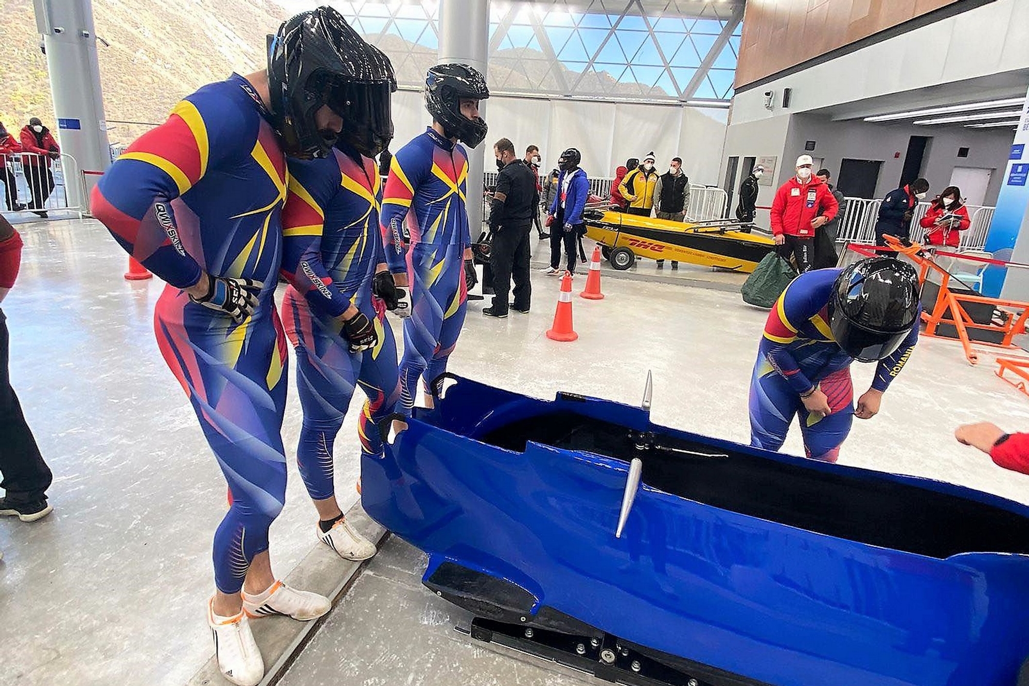 Primii reprezentanți ai României care au ajuns pe pârtiile olimpice de la Beijing au fost componenții lotului olimpic de bob. La competiția test de pe pista din Yanqing, cele mai bune rezultate românești au fost obținte la bob două persoane feminin și masculin. Dubloul feminin s-a clasat pe locul 4, iar cel masculin pe 9. În primele 15 poziții au terminat monobob feminin (locul 12) și bobul masculin patru persoane (locul 14).