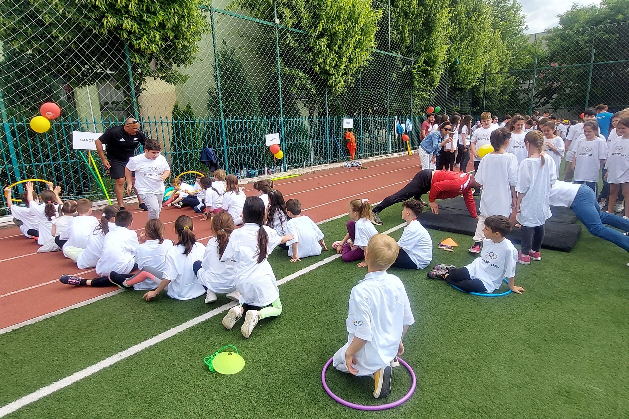 Îmbrăcați în tricouri albe înscripționate ”Olympic Day” și cercurile olimpice, copiii s-au zbenguit și au asaltat cu entuziasmul lor personalitățile sportului românesc. Mihai Covaliu i-a învățat trucuri prin care, în joacă, să-și testeze agilitatea. Cristinel Romanescu i-a îndrumat cum să țină pe paleta micuța minge de celuloid. Carmen Tocală împreună cu Anuța Stoenescu și Anca Șipoș le-au arătat cum să țintească coșul de baschet. Rectorul Florin Pelin le-a stârnit interesul pentru schi la atelierul de schi biatlon, iar Marius Urzică le-a arătat copiilor cât de distractiv poate fi mersul pe o bancă, în chip de bârnă. Distractia a continuat la handbal, tenis, canotaj, atletism sau tir sportiv.