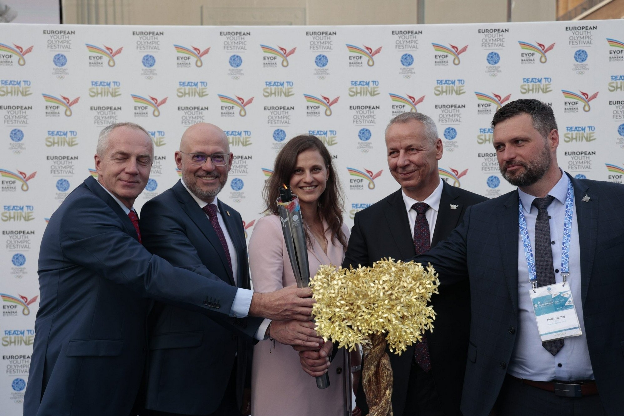 Președintele Comitetelor Olimpice Europene (EOC) Spyros Capralos a predat torța și Măslinul de Aur delegației Comitetului Olimpic din Slovacia în fruntea căruia s-au aflat președintele mișcării olimpice slovace Anton Siekel, Jan Nosko, primarul orașului Banska Bystrica și voleibalista Alexandrei Fricova.